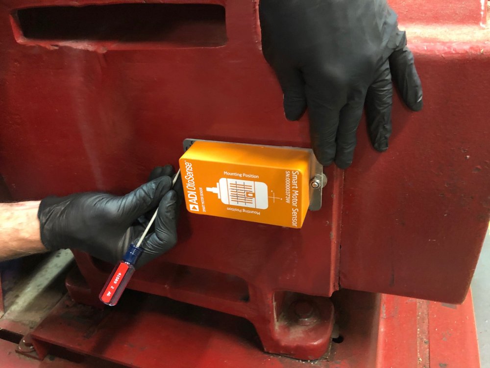モーターに放熱フィンがない場合は、下記の写真のようにマグネットベースを利用して SMS を固定します。詳しくは ADI の担当者にお問い合わせください。